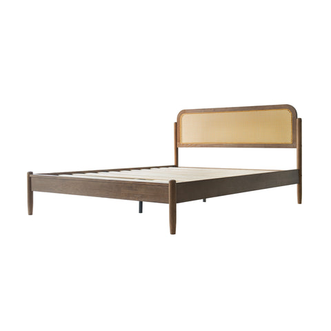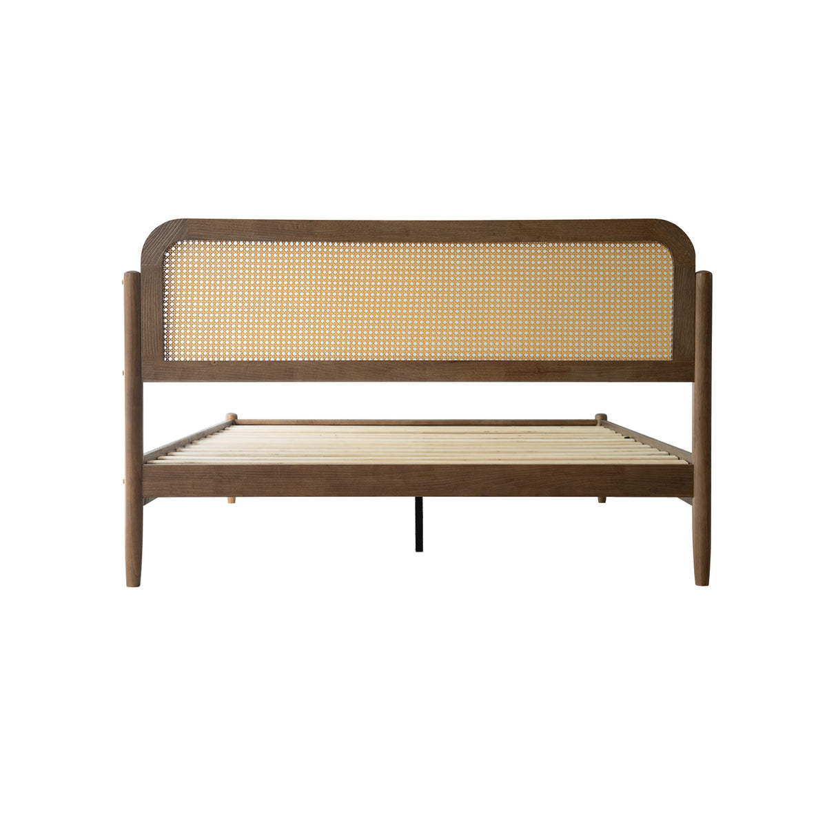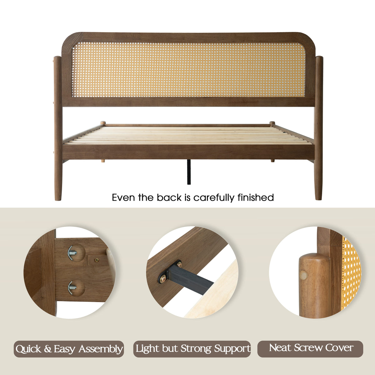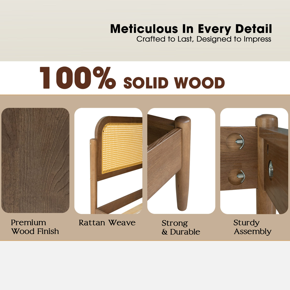 Transform your bedroom with the Jamison Queen Size Bed Frame by East West Furniture, a perfect blend of natural charm and lasting durability. Made from 100% solid Hevea wood (Rubberwood), this bed frame features a rich Barnwood finish that brings warmth and character to your space. The beautifully designed rattan Panel webbing headboard adds texture and a touch of vintage style, creating a cozy and inviting atmosphere. Built for strength and comfort, the Jamison Bed includes 12 heavy-duty wooden slats reinforced by metal center legs, providing firm mattress support and a weight capacity of up to 800 lbs. Its anti-slip and noise-free structure ensures stability and quiet comfort all night long. With 8.3 inches of under-bed clearance, it offers ample space for convenient storage and easy cleaning. Standing 15 inches high with a 40-inch headboard, this platform bed delivers a balanced, elegant look. No box spring is required, and assembly is quick and simple with all tools included. Rounded corners, smooth edges, and a fine wood grain finish highlight East West Furniture’s attention to detail and superior craftsmanship. The Jamison Bed is a stylish and sturdy centerpiece that enhances both the beauty and functionality of your bedroom.