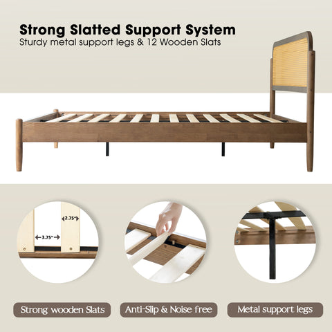 • Platform Support: 12 Heavy-Duty Wooden Slats + Metal Center Legs