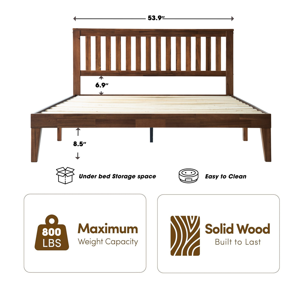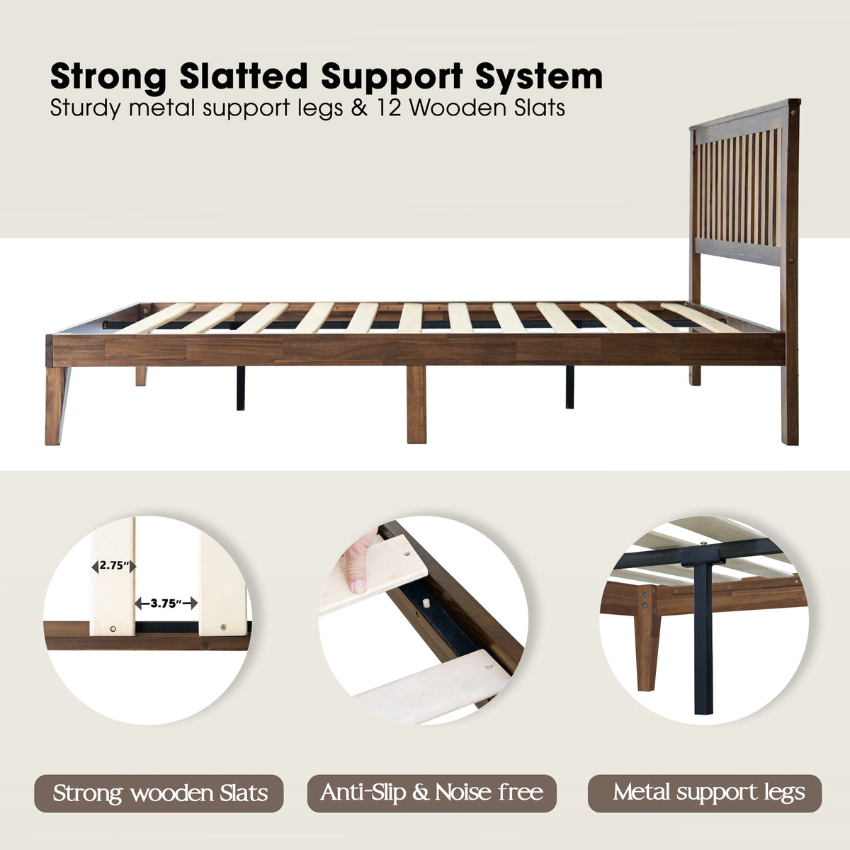 • Platform Support: 12 Durable Wooden Slats + Metal Center Legs