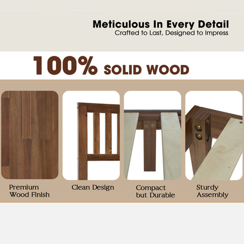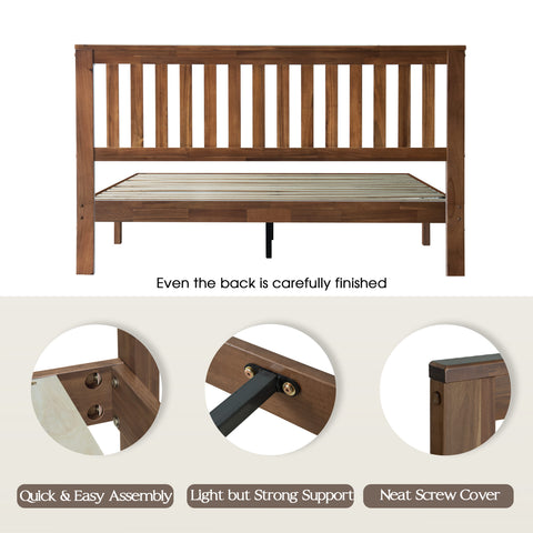 Full Size Bed Frame with Headboard & Footboard, Solid Wood Platform Bed, Anti-Noise & Slip-Free, 12 Strong Slatted Structure with Metal Legs, No Box Spring Needed, Easy Assembly, Walnut Finish, JPF-37