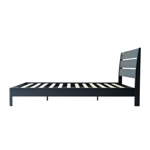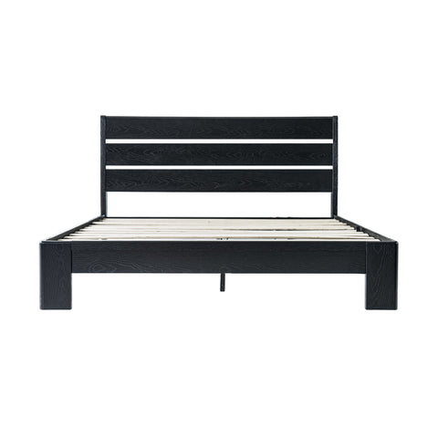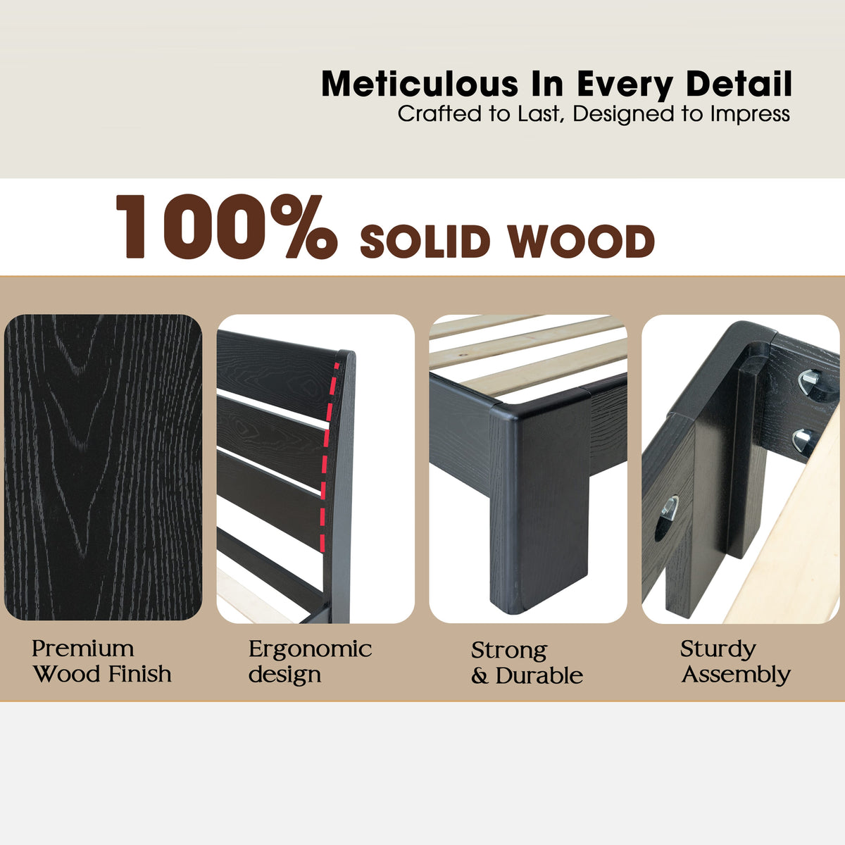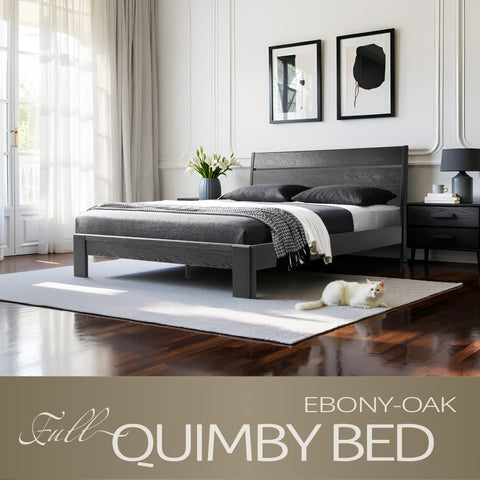 Upgrade your bedroom with the Quimby Full-Size Platform Bed Frame by East West Furniture, combining strength, style, and comfort in one elegant design. Made from 100% solid Para wood, this bed frame offers lasting durability, natural beauty, and timeless appeal. The Ergonomic Ladder Panel headboard delivers a sleek, modern look that fits perfectly with both contemporary and rustic interiors. Finished in a rich Ebony Oak tone, it showcases the natural wood grain while adding warmth and sophistication to your space. Built for stability, the platform bed features 12 sturdy wooden slats reinforced with a metal bar, providing slip-resistant and noiseless support for up to 800 lbs - no box spring required. The 6.3-inch under-bed clearance allows extra storage and easy cleaning. With rounded corners, smooth edges, and flawless finishing, every detail reflects East West Furniture’s superior craftsmanship. Easy to assemble and designed for daily use, the Quimby Platform Bed blends solid wood strength, modern elegance, and functional design to enhance any bedroom.