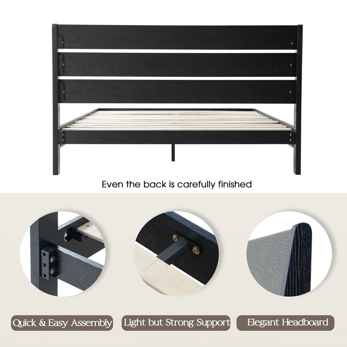 Full Size Bed Frame, Solid Wood Platform Bed with Headboard & Footboard, 12 Heavy-Duty Slatted Structure, Metal Legs, No Box Spring Needed, Anti-Slip & Noise-Free, Ebony Oak Finish, QIF-35