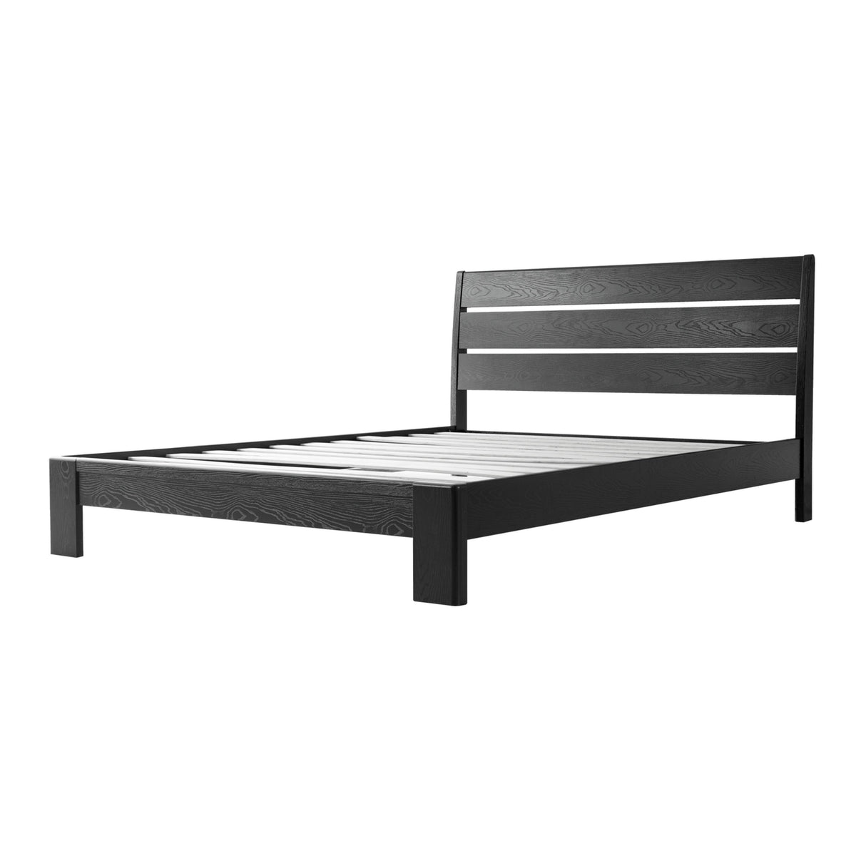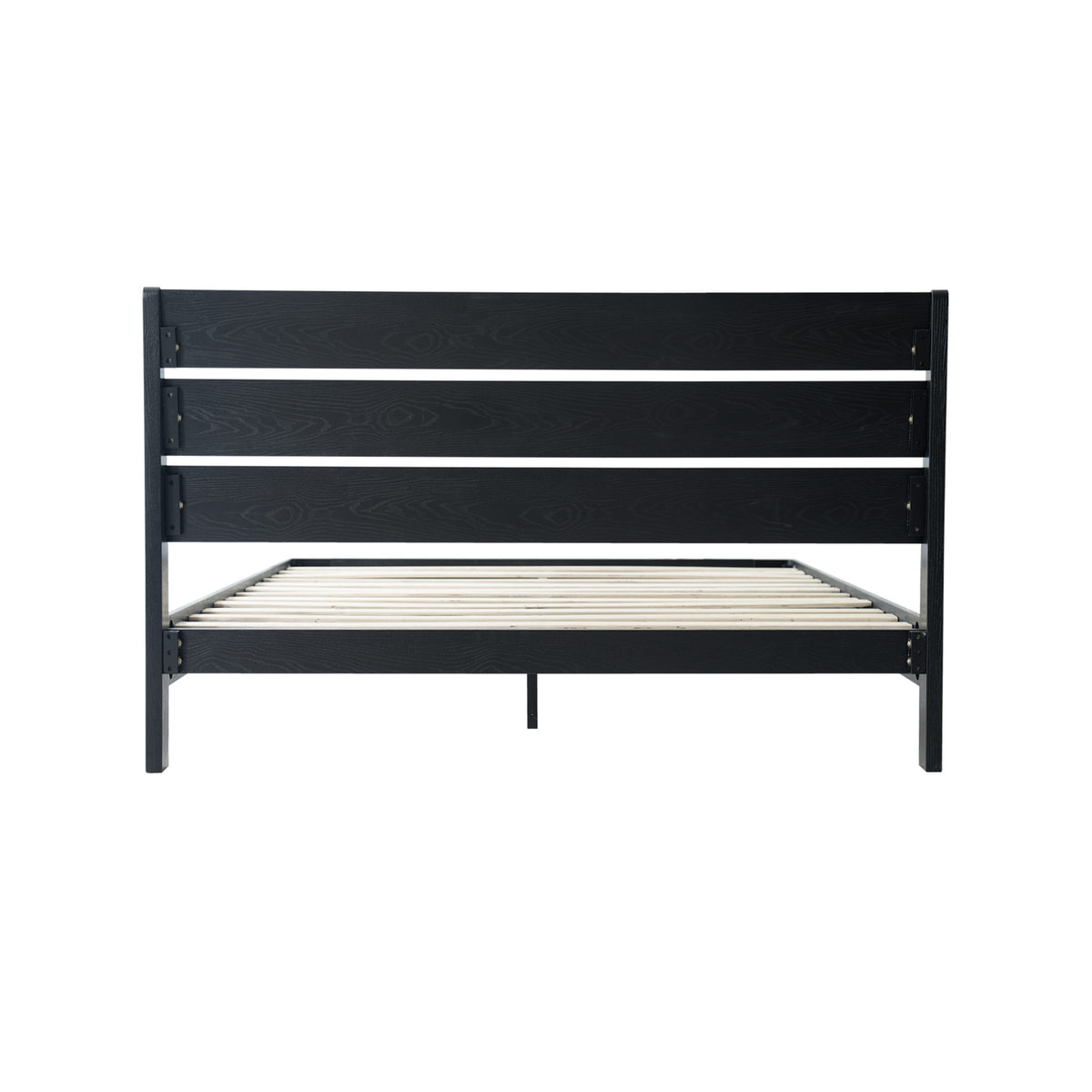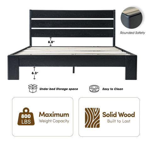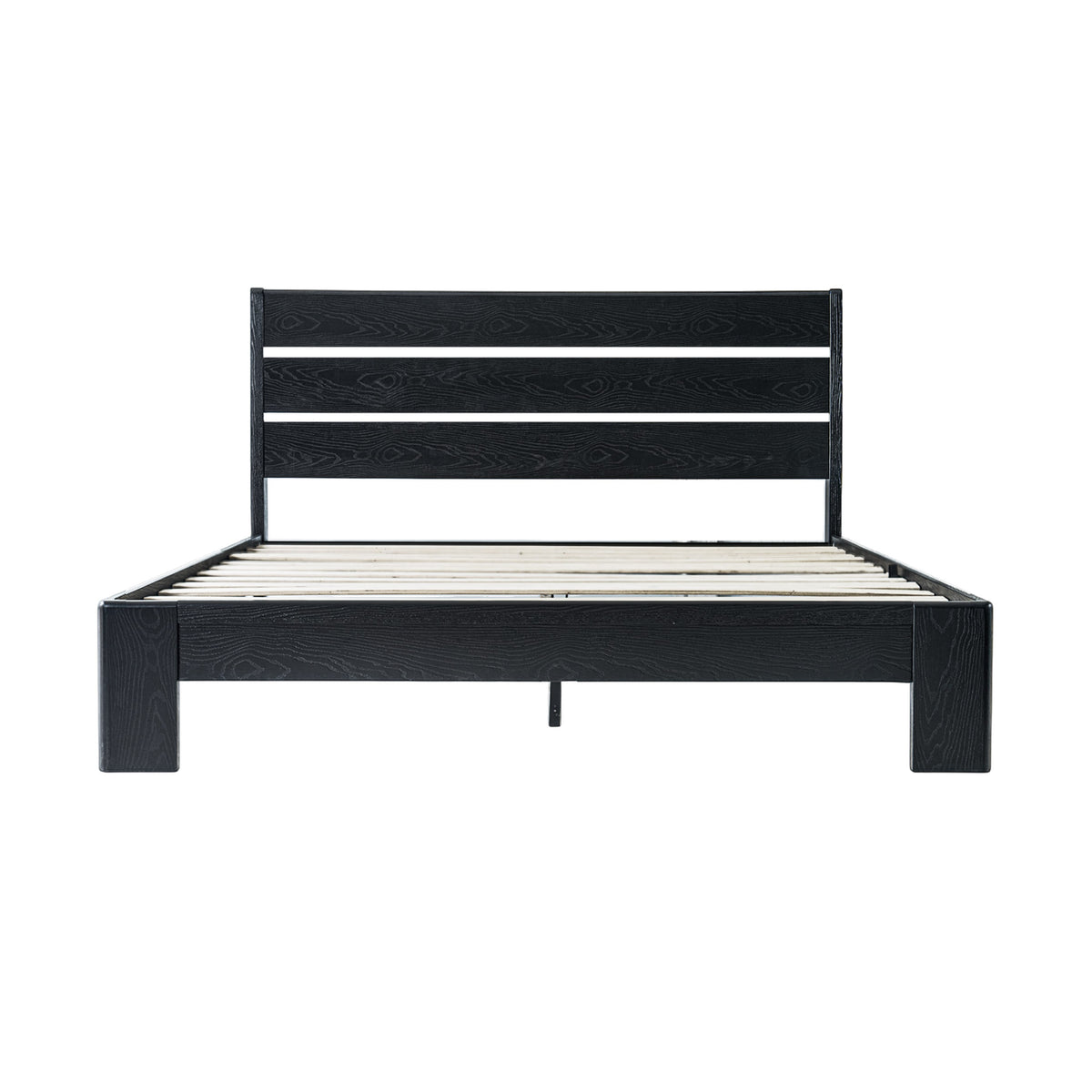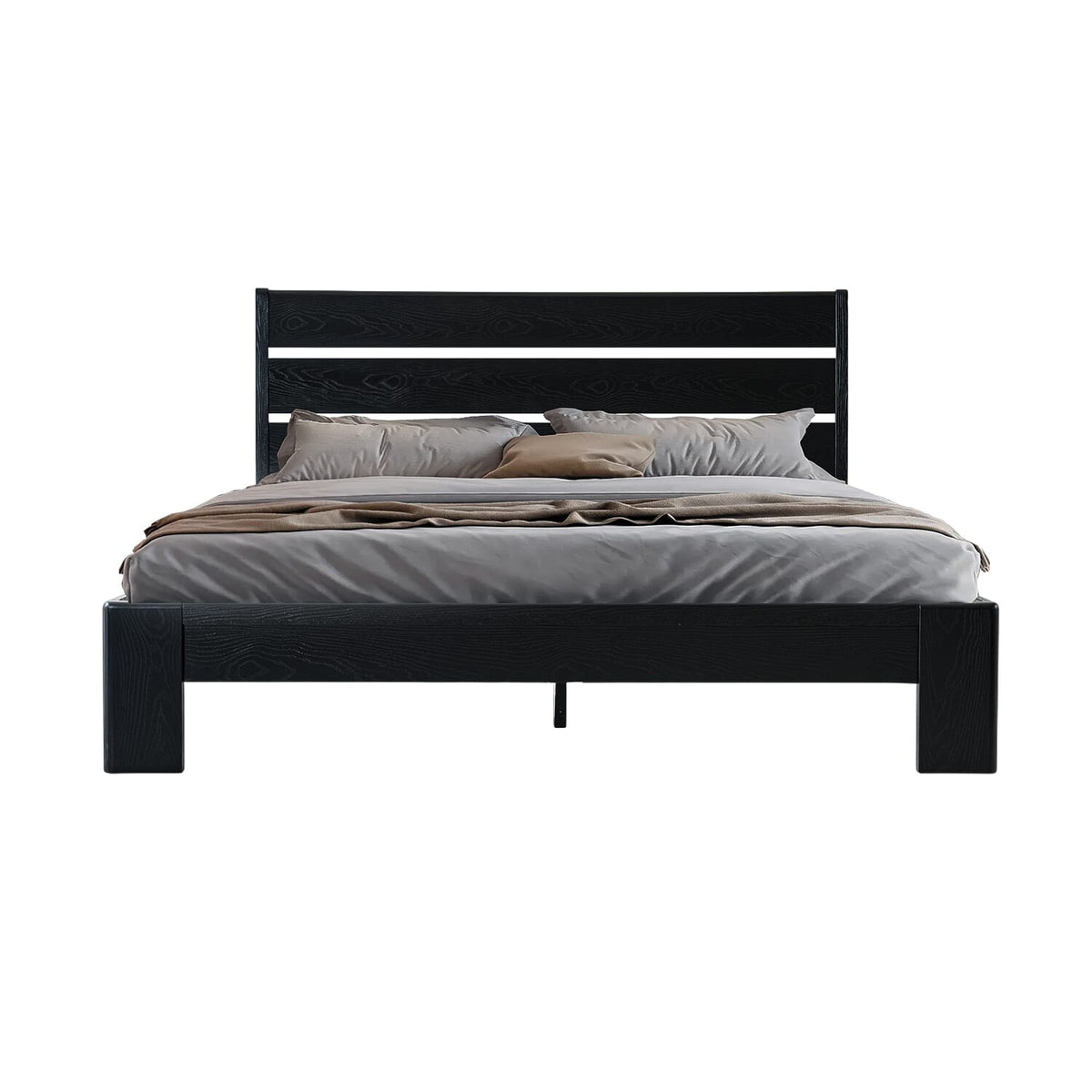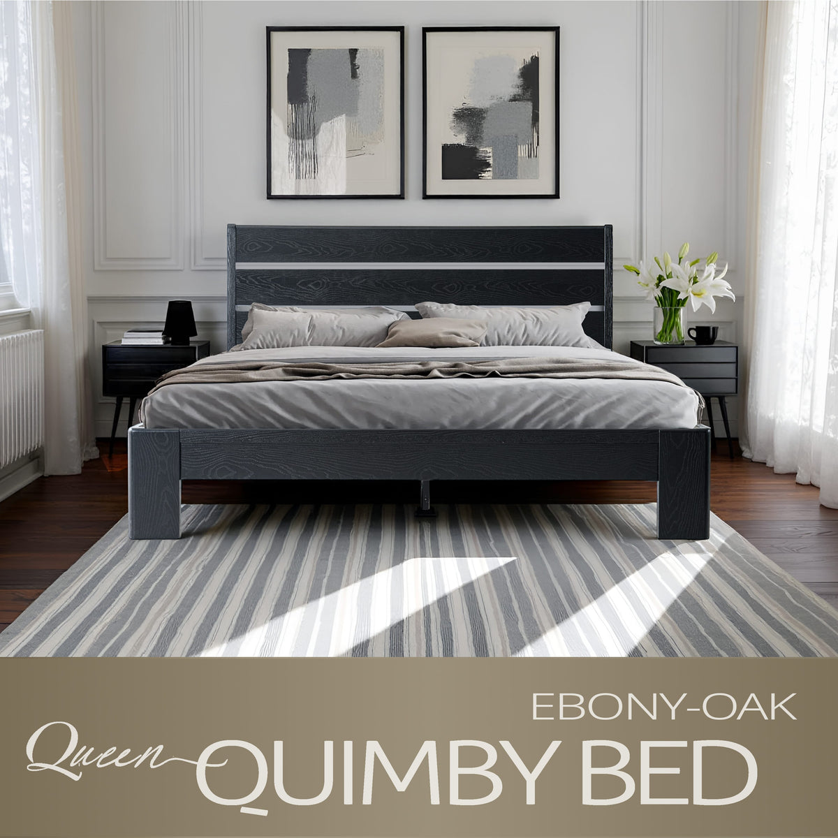 Add a touch of sophistication and durability to your bedroom with the Quimby Queen-Size Platform Bed Frame by East West Furniture. Expertly built from 100% solid Para wood, this bed frame offers long-lasting strength, natural beauty, and timeless charm. The Ergonomic Ladder Panel headboard enhances its clean, modern design, perfectly suited for both contemporary and rustic interiors. Finished in a striking Ebony Oak tone, it accentuates the natural wood texture while creating a warm, refined, and inviting atmosphere. Designed for superior stability, the platform bed features 12 strong wooden slats reinforced with sturdy metal legs, providing slip-safe and noiseless support for up to 800 lbs - no box spring required. With a 6.3-inch under-bed clearance, you get added space for storage and effortless cleaning. Every detail - from rounded corners to a smooth wood finish - showcases East West Furniture’s commitment to quality craftsmanship. Easy to assemble and built for everyday comfort, the Quimby Platform Bed combines solid wood strength, modern elegance, and functional design to complete your bedroom’s look.