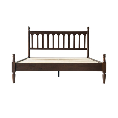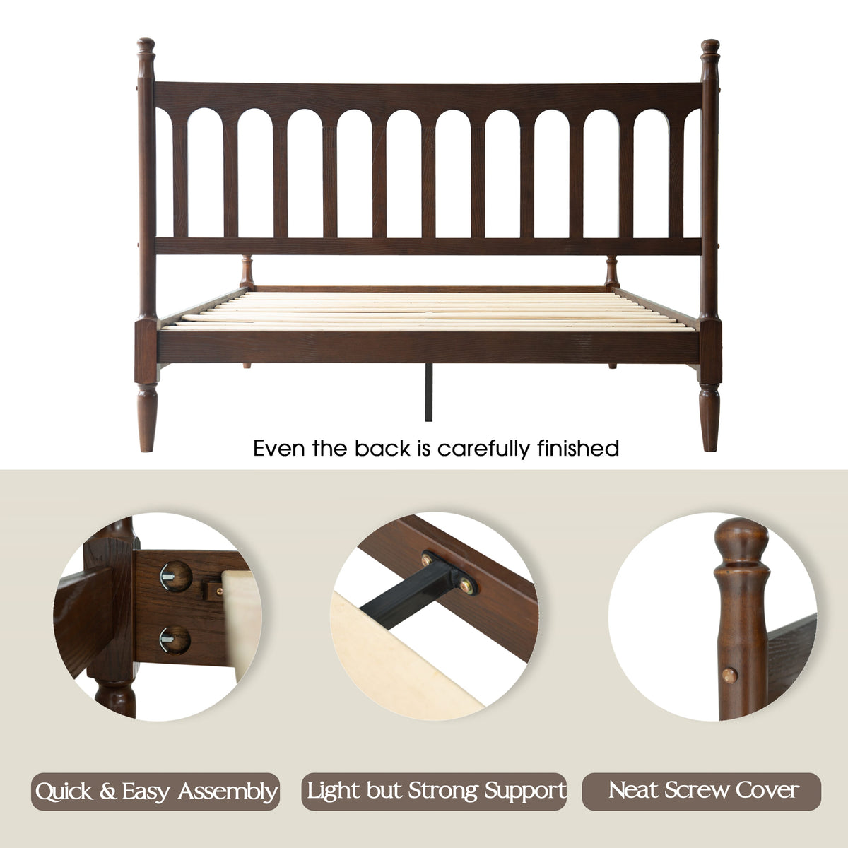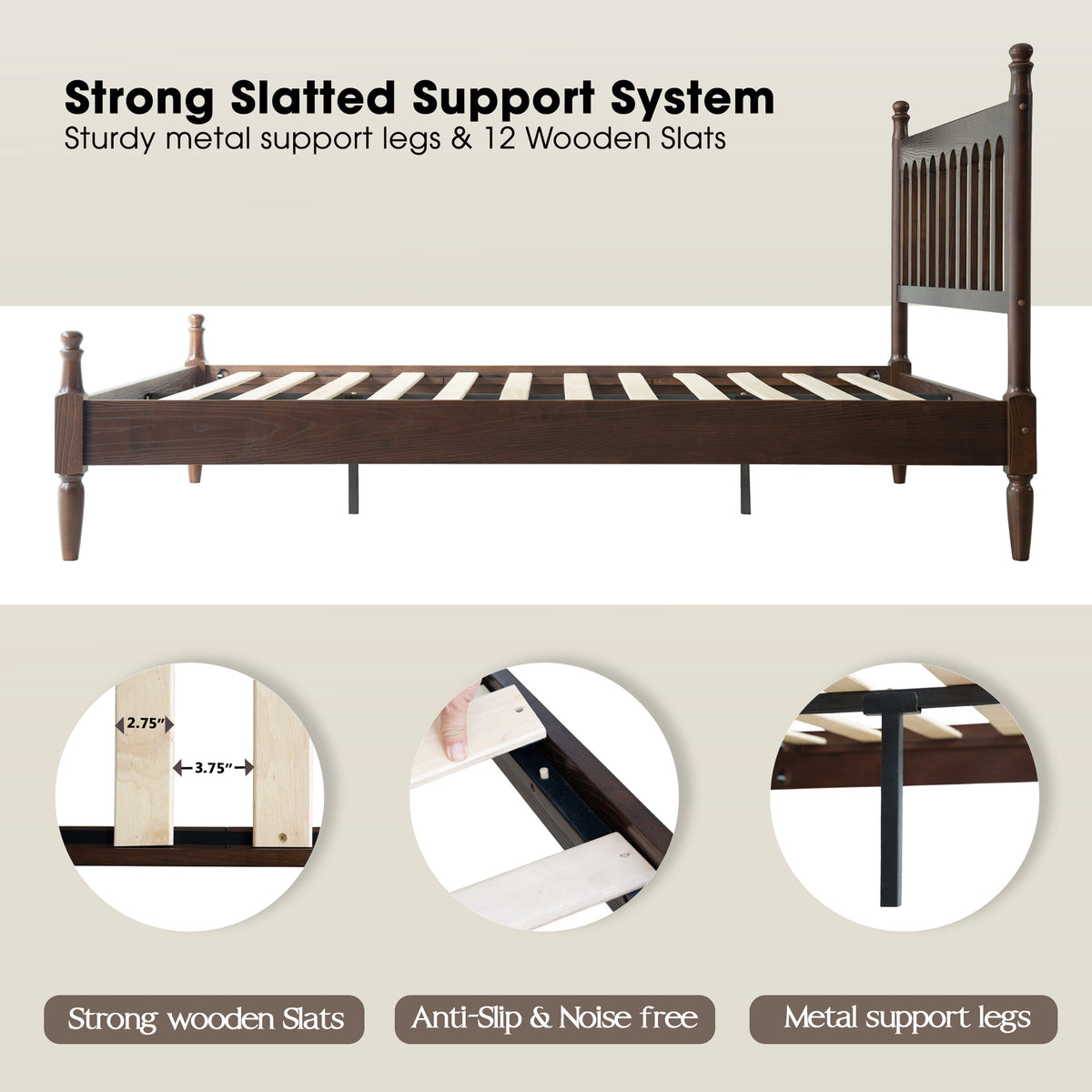 Queen Size Bed Frame with Headboard & Footboard, Solid Wood Platform Bed, Centre Metal Legs,12 Heavy-Duty Slatted Base, No Box Spring Needed, Noise-Free & Anti-Slip, Dark Roast Oak Finish, WCQ-32