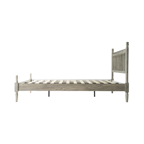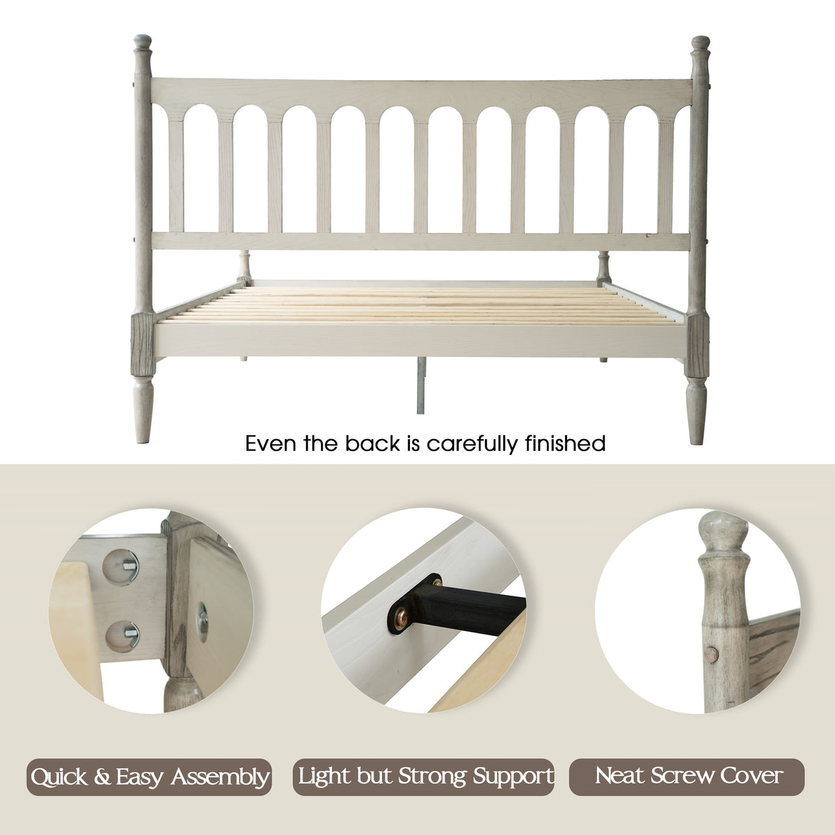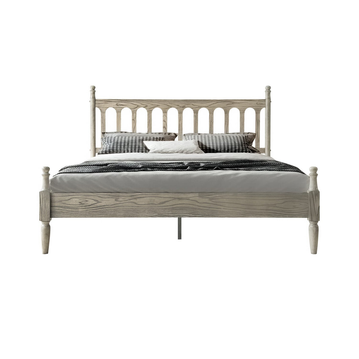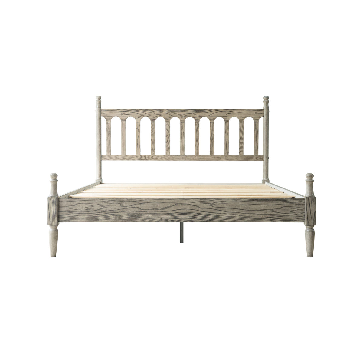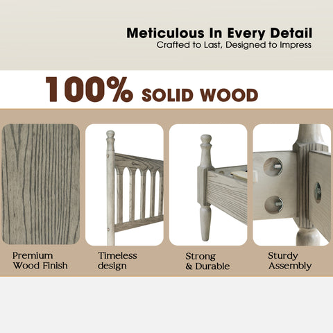Add timeless charm and lasting quality to your bedroom with the Wichita Queen Size Bed Frame. Expertly built from 100% solid Hevea wood (Rubberwood), this platform bed combines exceptional strength with a naturally elegant design. The Weathered Gray Oak finish and vintage-inspired headboard and footboard create a refined, rustic look that enhances both classic and modern interiors. The Wichita Bed Frame includes 12 strong wooden slats reinforced by metal center legs, providing exceptional stability, durability, and support for up to 800 lbs. Its slip-free and noiseless structure ensures a quiet, comfortable sleep experience - no box spring required. With a 9.6-inch clearance beneath the frame, it offers convenient under-bed storage for boxes, bags, or seasonal items while allowing easy cleaning access. Finished with smooth edges, screw covers, and a neatly crafted back, this bed showcases East West Furniture’s commitment to detail and craftsmanship. Quick and easy assembly makes setup simple, and the sturdy design ensures long-lasting reliability.