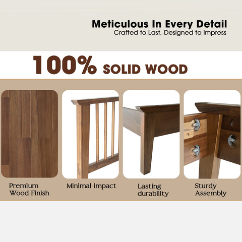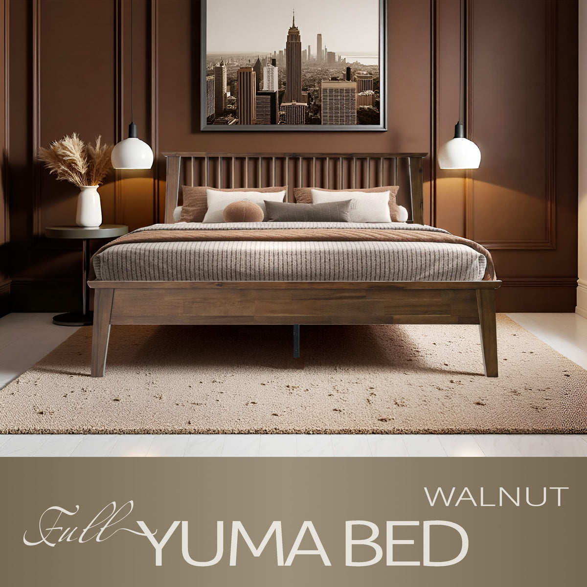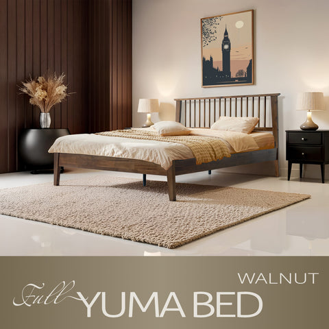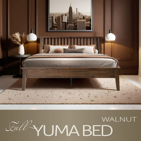 Bring style and comfort to your bedroom with the Yuma Full Size Platform Bed. Made from 100% premium Hevea Wood, this luxurious bed combines long-lasting durability with timeless beauty. The traditional slatted-style headboard adds warmth and sophistication, while the Walnut finish enhances your space with a rich, natural look that’s easy to maintain. Built with a 14-inch solid wood platform base, it features 12 durable wooden slats and reinforced metal center legs for anti-slip, noise-free support - no box spring needed. With 8.3 inches of clearance underneath, it offers practical storage and easy cleaning access. Perfect for guest rooms, apartments, or master bedrooms, the Yuma Full Bed delivers the ideal blend of comfort, stability, and modern charm. Experience the superior craftsmanship East West Furniture is known for and enjoy peaceful nights in a bed built to last.