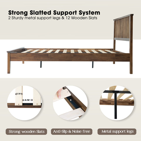 Full Size Bed Frame with Headboard & Footboard, Solid Wood Platform Bed, 12 Heavy-Duty Slatted Base with Center Metal Legs, No Box Spring Needed, Noise-Free & Slip-Free, Walnut Finish, YUF-37
