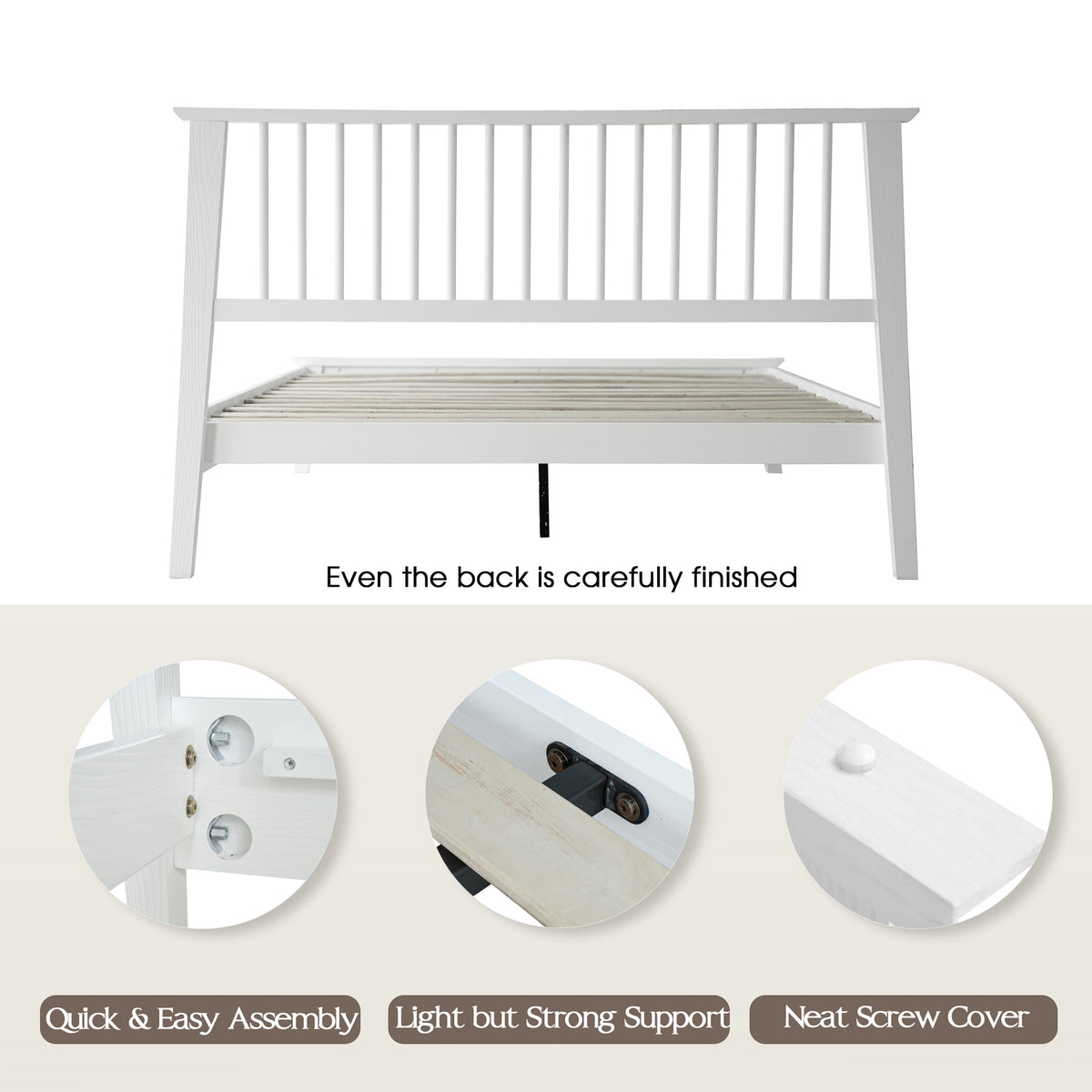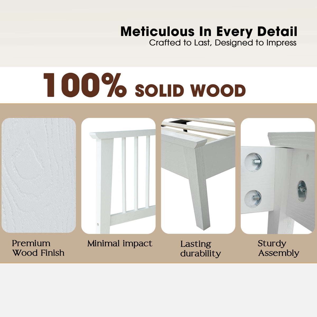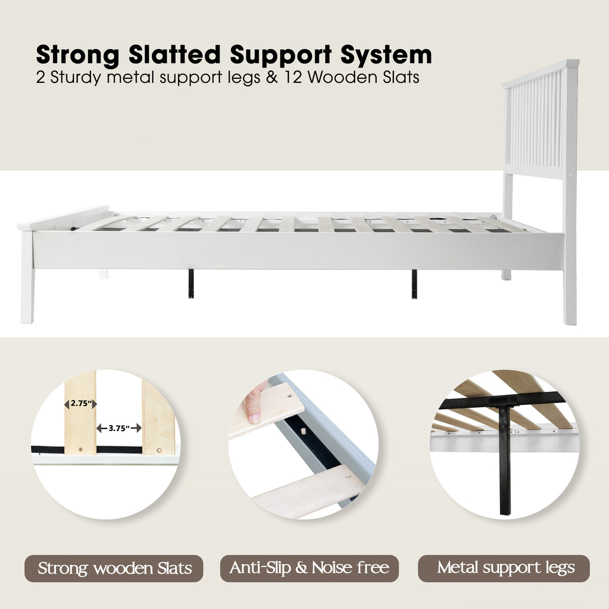 Full Size Bed Frame, Headboard & Footboard, Solid Wood Platform Bed, Anti-Slip & Noise-Free, 12 Durable Slatted Base, Centre Metal Legs, Easy Assembly, No Box Spring Needed, Pure White Finish, YUF-39
