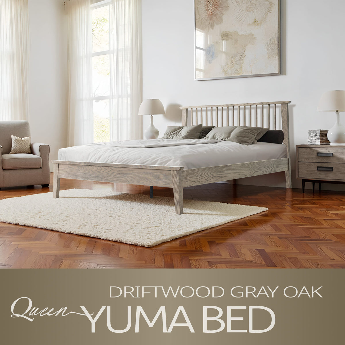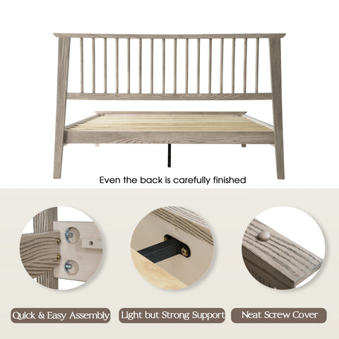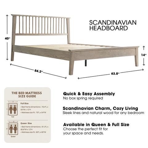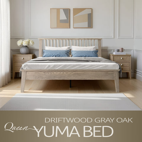 Bring style and comfort to your bedroom with the Yuma Queen Size Platform Bed. Made from 100% premium Hevea Wood (Rubber wood), this luxurious bed combines lasting strength with refined beauty. The traditional slatted-style headboard adds warmth and elegance, while the Driftwood Gray Oak finish enhances your space with a modern and natural look that’s easy to maintain. Built with a 14-inch solid wood platform base, it features 12 strong wooden slats and reinforced metal center legs for noise-free, slip-free support, no box spring needed. With 8.3 inches of clearance underneath, it offers convenient storage and easy cleaning access. Whether updating your master suite or setting up a guest room, the Yuma Queen Bed delivers the ideal blend of durability, comfort, and timeless sophistication. Bring home the quality craftsmanship East West Furniture is known for and experience restful nights in a bed built to last.