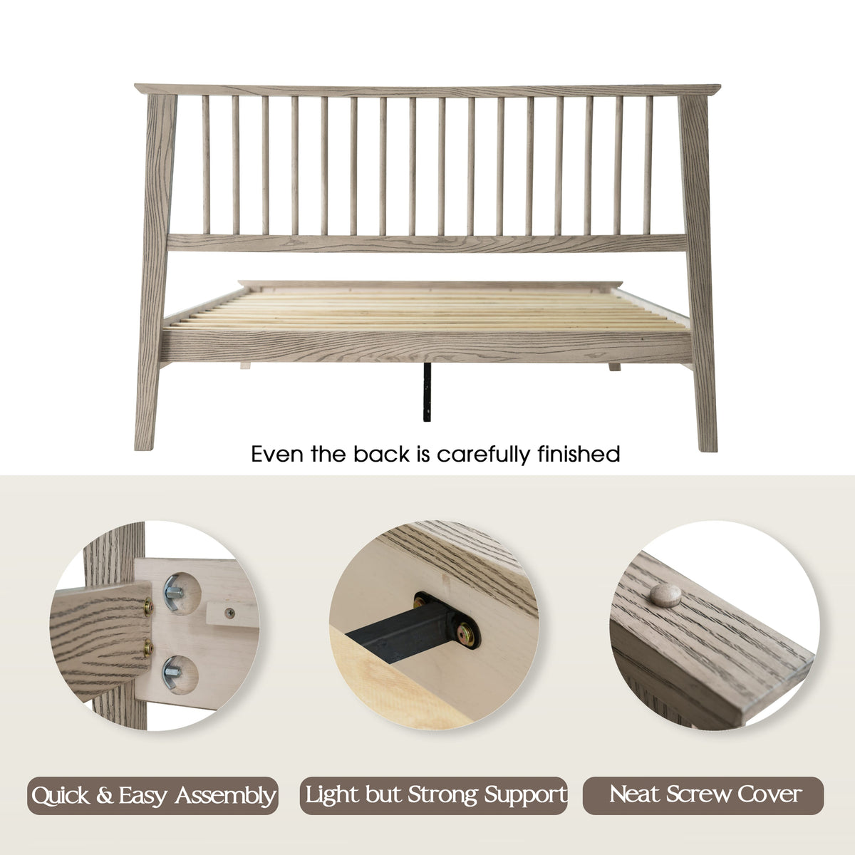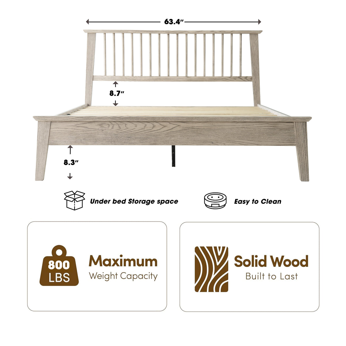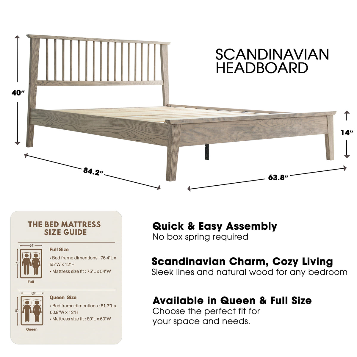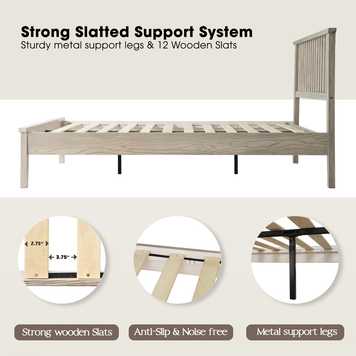 • Platform Support: 12 Durable Wooden Slats + Metal Center Legs