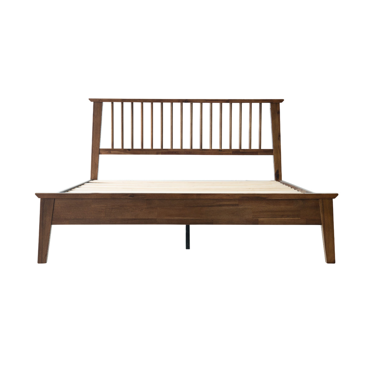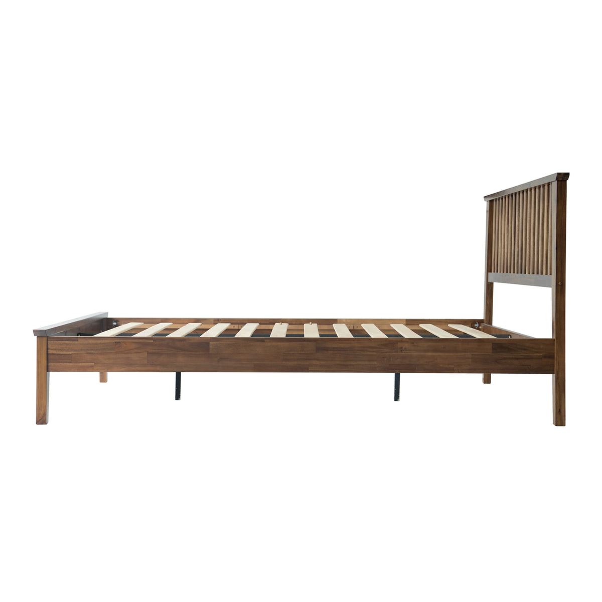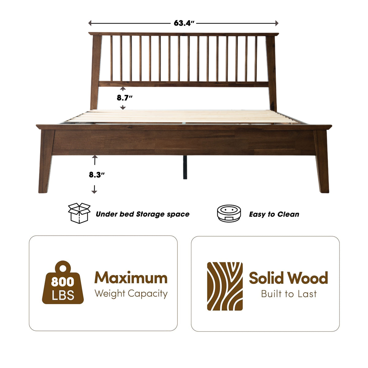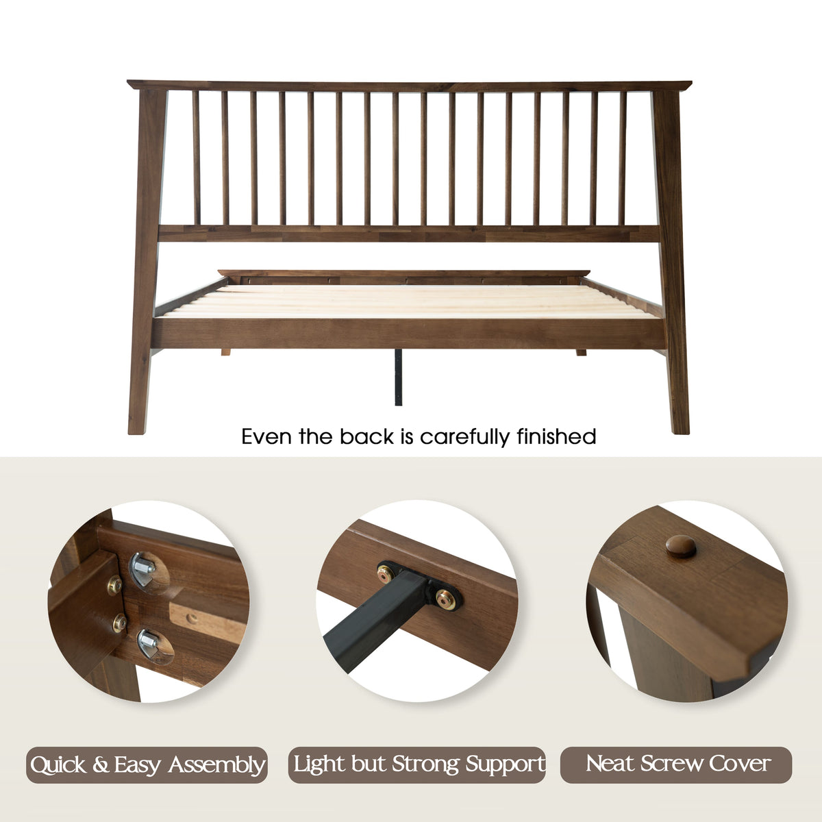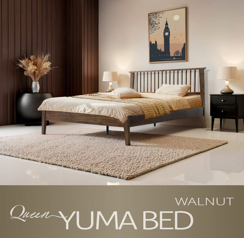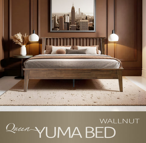 Bring style and comfort to your bedroom with the Yuma Queen Size Platform Bed. Crafted from 100% premium Hevea Wood (Rubber wood), this luxurious bed combines lasting durability with elegant design. The traditional slatted-style headboard adds warmth and sophistication, while the Walnut finish enriches your space with a rich, natural tone that’s easy to maintain. Built with a 14-inch solid wood platform base, it features 12 sturdy wooden slats and reinforced metal center legs for anti-noise, slip-free support - no box spring required. With 8.3 inches of clearance underneath, it provides convenient storage space and easy access for cleaning. Perfect for both master and guest bedrooms, the Yuma Queen Bed delivers a timeless balance of style, comfort, and strength. Bring home East West Furniture’s trusted craftsmanship and enjoy restful nights in a bed built to last.