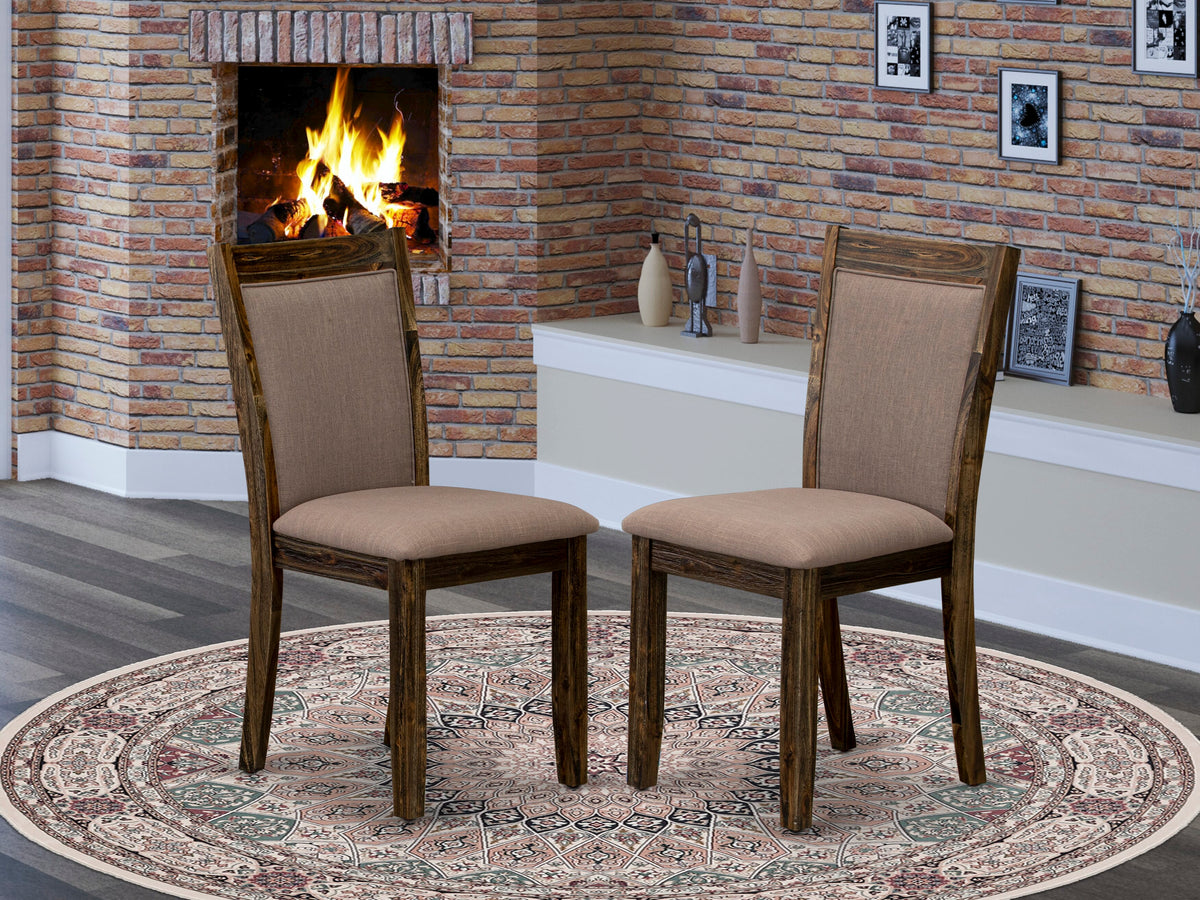 East West Furniture X777MZ748-5 5 Piece Dinning Table Set - A Distressed Jacobean Top Dining Table with Trestle Base and 4 Coffee Linen Fabric Rustic Dining Chairs - Distressed Jacobean Finish