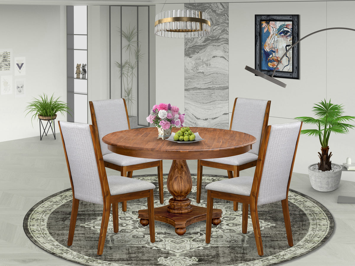 Luxe by East West Furniture - F2LA5-50N-05 - 5-Pc Kitchen Dining Table Set Includes A Wooden Dining Table and 4 Grey Linen Fabric Dining Chairs with High Back, Antique Walnut
