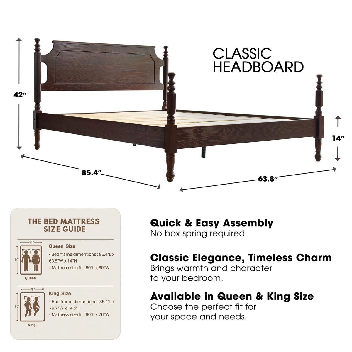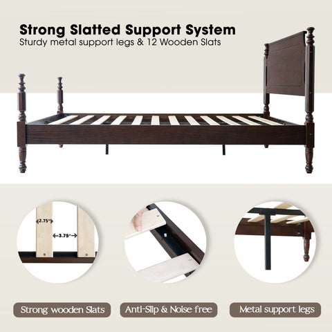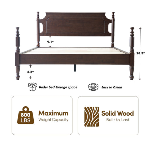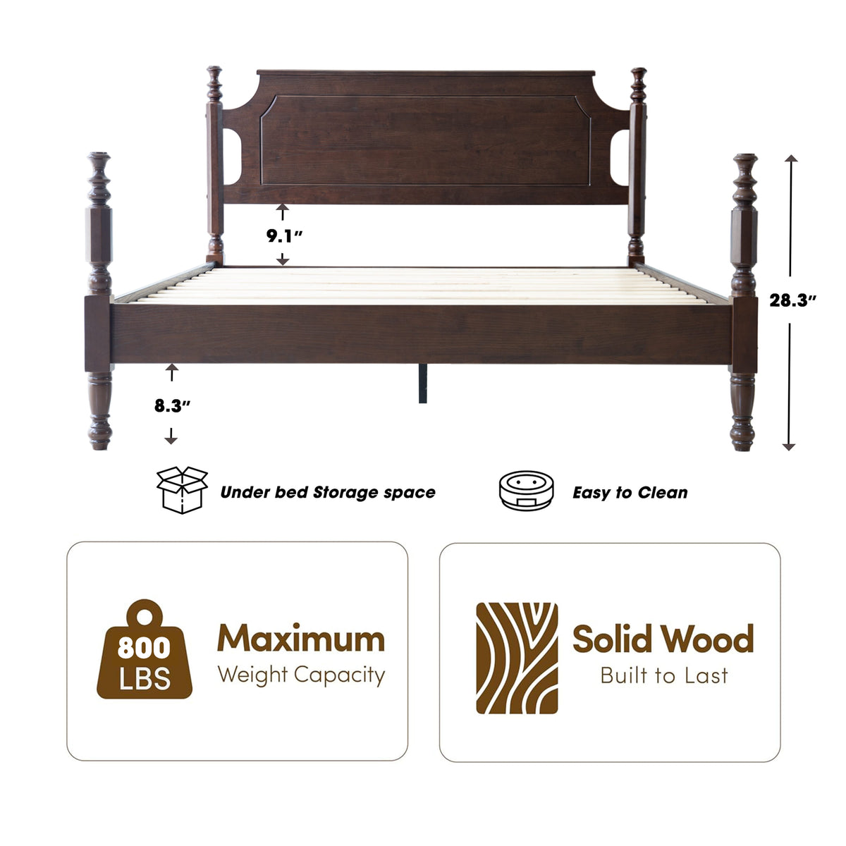 Queen Size Bed Frame, Solid Wood Platform Bed with Headboard & Footboard, Center Metal Legs, 12 Heavy-Duty Slatted, Noise & Slip-Free, No Box Spring Needed, Easy Assembly, Dark Roast Oak Finish, ROQ-32 Sale