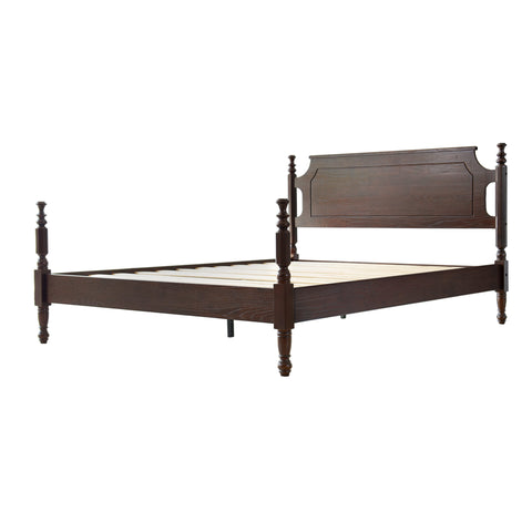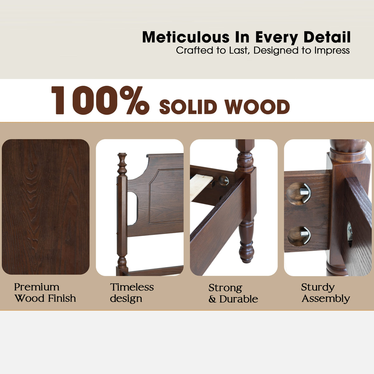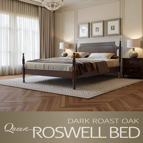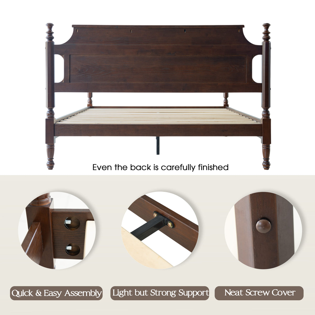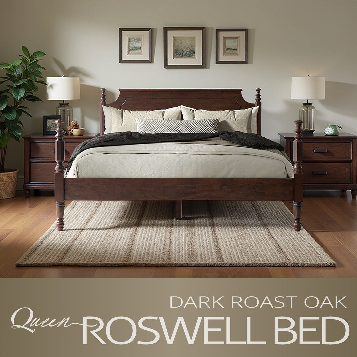 Queen Size Bed Frame, Solid Wood Platform Bed with Headboard & Footboard, Center Metal Legs, 12 Heavy-Duty Slatted, Noise & Slip-Free, No Box Spring Needed, Easy Assembly, Dark Roast Oak Finish, ROQ-32 Sale