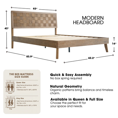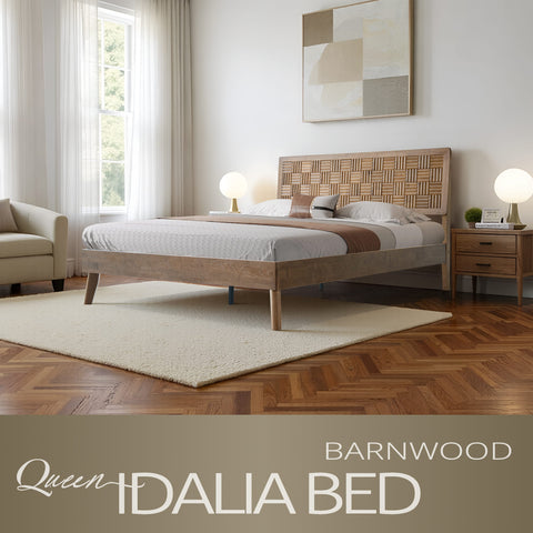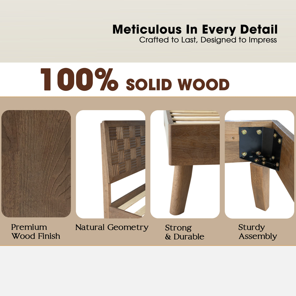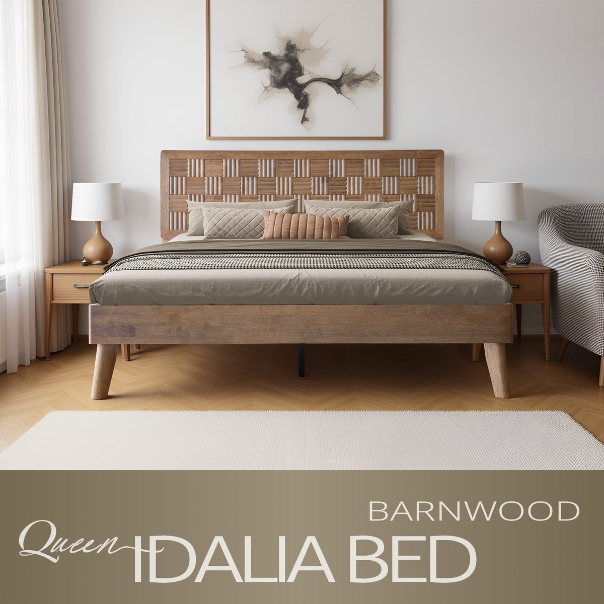 Experience classic design and peaceful comfort with the Idalia Queen Size Bed Frame, turning your room into a cozy retreat. Made from 100% solid wood, it features a Deep Barnwood finish that shows the natural texture of real wood grain. The Geometric Pattern headboard adds a clean modern touch, while the slightly angled backrest provides gentle comfort for reading or resting after a busy day. Built with a solid 12-slat platform and firm metal legs, the Idalia Bed ensures steady support and quiet sleep, no box spring required. With 8.3 inches of space below, it gives simple cleaning and storage ease. Every part, from the polished finish to the smooth screw covers, shows East West Furniture’s care for fine detail and design. Strong but lightweight, this bed frame joins solid strength, style, and comfort for a calm, refined look in your room.