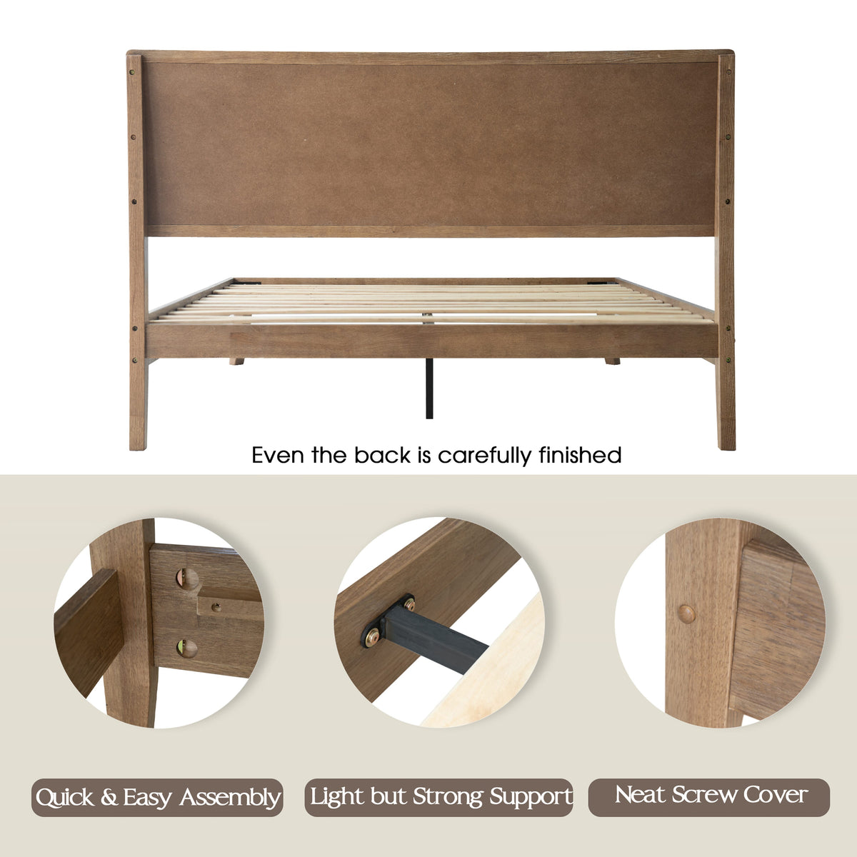 Queen Size Bed Frame, Headboard & Footboard, Solid Wood Platform Bed, Center Metal Legs with 12 Heavy-Duty Slatted Base, Easy Assemble, Noise & Slip-Free, No Box Spring Needed, Barnwood Finish, IDQ-30