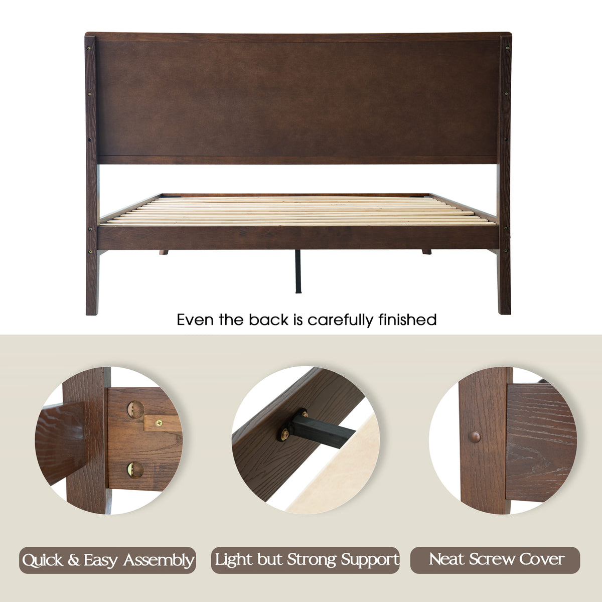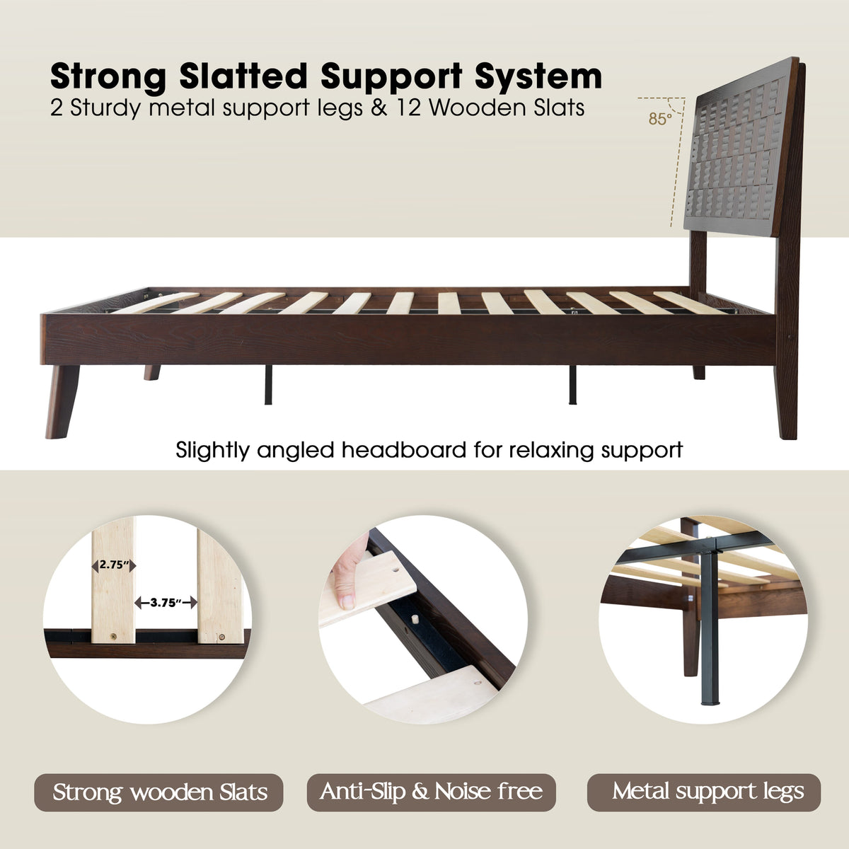 Queen Size Platform Bed Frame with Headboard & Footboard, Central Metal Legs, 12 Slatted Base, No Box Spring Needed, Anti-Slip & Noise-Free, Easy Assembly, Dark Roast Oak Finish, IDQ-32