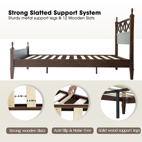1 Queen Size Bed Frame with Headboard, Footboard, 12-Wooden Slats, and Reinforced Metal Center Legs