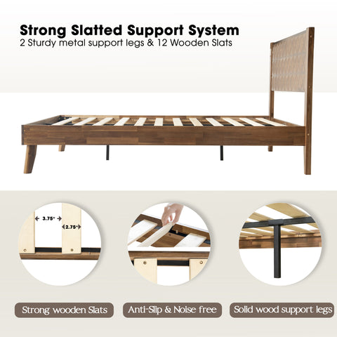 Queen Size Bed Frame with Headboard & Footboard, Solid Wood Platform Bed with Metal Legs, 12 Reinforced Slatted Base, Noise-Free & Anti-Slip, No Box Spring Needed, Walnut Finish, UPQ-37