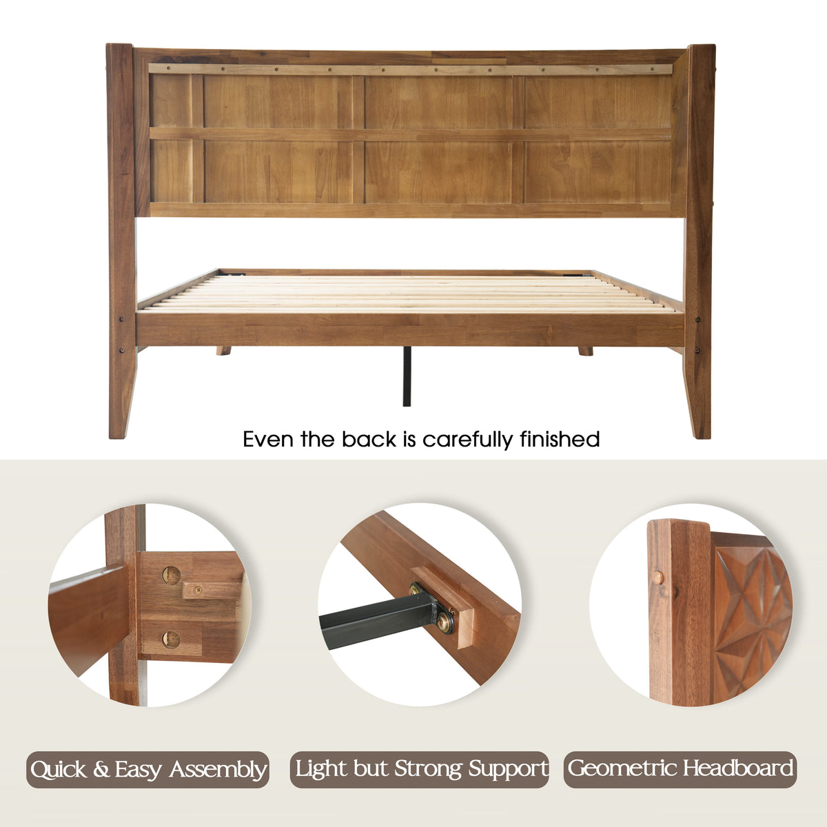 • Platform Support: 12 Wooden Slats + Metal Center Legs